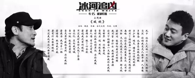 电影《冰河追凶》主题曲《破绽》是与久石让、梅林茂齐名的日本配乐大师岩代太郎亲自作曲。该主题曲单曲已经发布再次创造点击量新高,广受欢迎。歌词海报中梁家辉表情坚定,一句“当对抗命运的罪犯 为你我敢”,恰到好处地点明周鹏这个角色的决心。而佟大为双手持枪,面部带伤,一句“我不管 拿什么我都拼命要换”尽显热血澎湃。而魏晨版歌词海报中,他表情重,“当现实 说 不服来战”的义气方刚溢出画面。很多网友说:“主题曲与电影完美结合,好期待早日看到电影。”