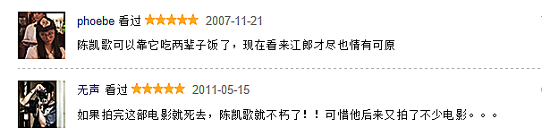 陈导自己也说:时代力量是大于个人力量的。不是说我现在就拍不出来了,是现在这个环境决定了电影不能再这么拍了。是啊,电影不能让你再这么拍了。
