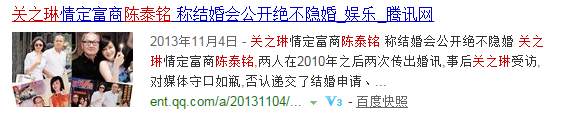 虽然不知道关之琳和陈泰铭是什么时候结婚