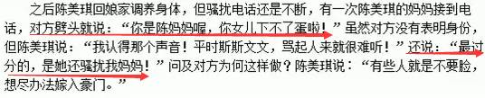 而且陈美琪还说自己接过小三的骚扰电话