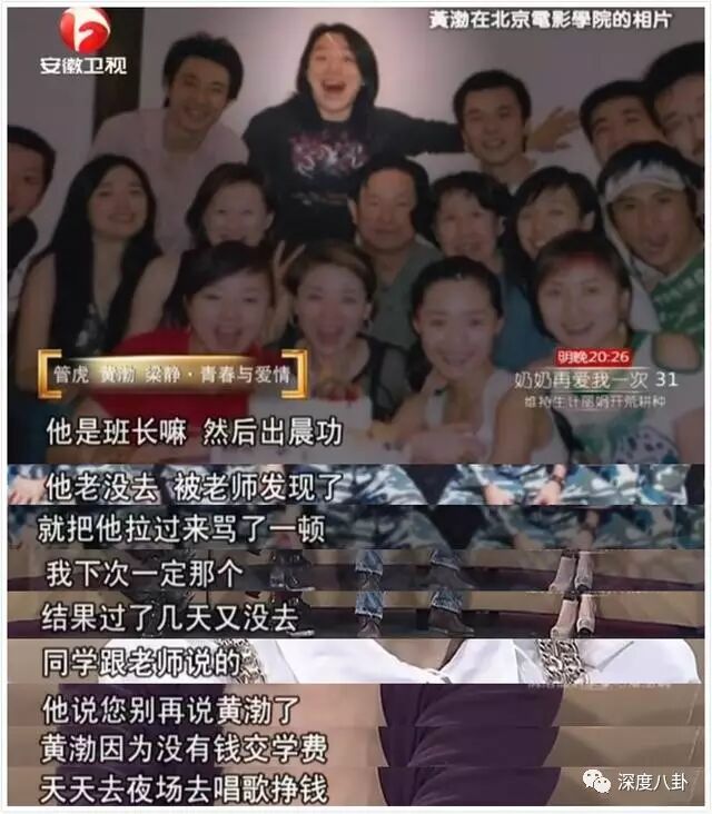 梁静还爆料过黄渤这段时间的辛酸经历,“他是班长,每天出晨功老是不去,被老师发现了给骂了一顿,结果过几天又没去。同学帮忙解释了真相:黄渤因为没钱交学费,天天去夜场唱歌挣钱。”