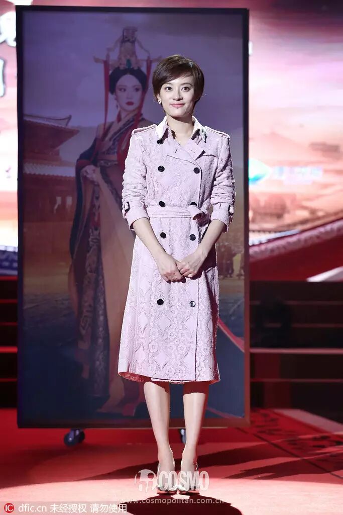 ▲《芈月传》开播盛典,孙俪身穿Burberry粉色蕾丝风衣现身,整体气质清新脱俗。