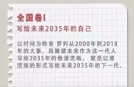 那今年的全国高考语文作文命题,也是蛮有创意的。挑几个跟大家聊聊,全国卷1,写给未来2035年的自己,说易烊千玺完美押题,因为去年春晚的时候就唱了这首歌。还蛮有意思的,2035年,也就是17年后,很可怕了,哪怕是00后的千禧少年,也都步入中年。