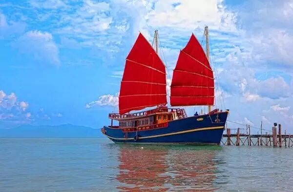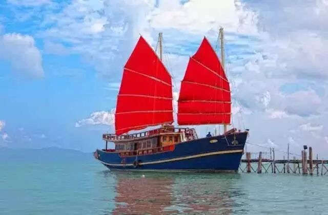 4、搭乘王菲最爱的复古红帆船出海看日落:苏梅只有一艘红帆船,总共有40个位置,日落之旅非常浪漫,下午4点30出发,先去日落,因为实在海上,视觉和角度不同,看到的日落也更加梦幻。日落后会在晚霞中用晚餐,然后到与人村码头看夜景,最后送回码头,整个行程很轻松,是苏梅岛比较好的一个项目,无论情侣还是家庭出游,都适合。