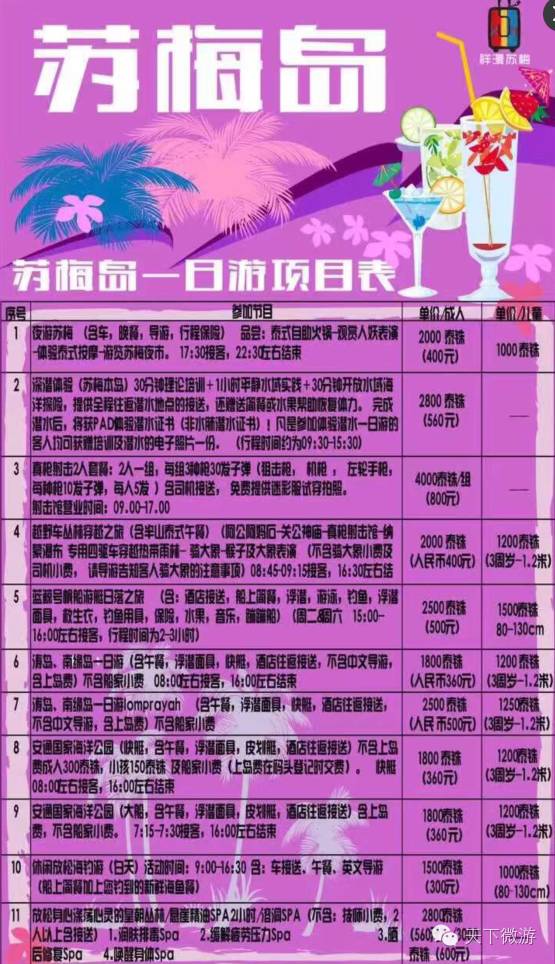 2、去涛岛或南园岛的时候最好提前买好饮料和零食,因为岛上的价格比苏梅高一倍。