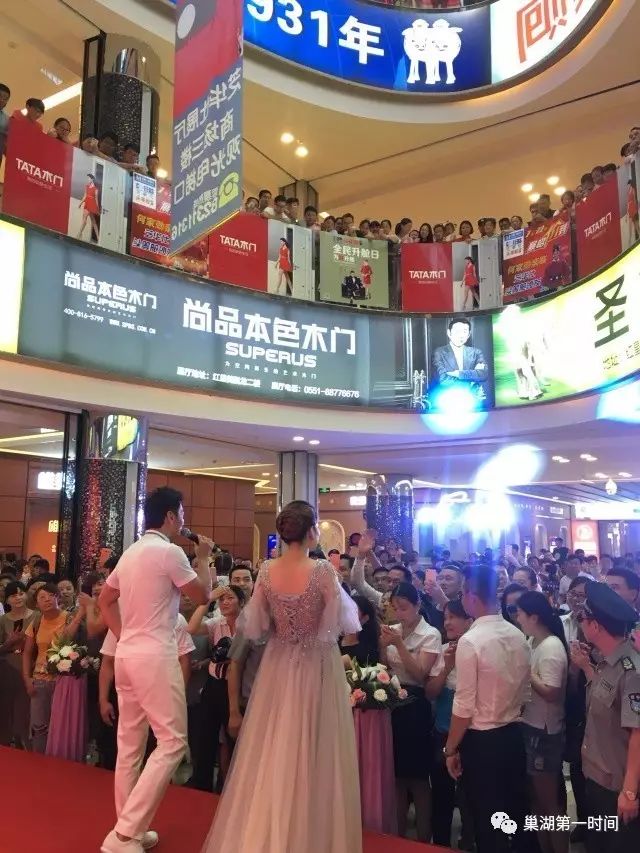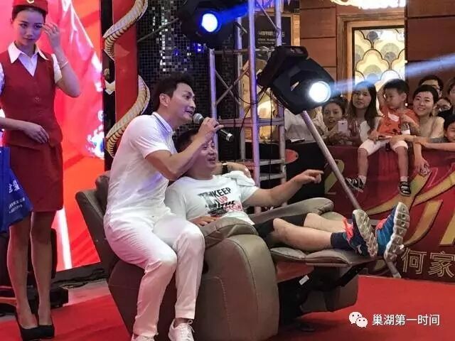 22日中午12:00,商场舞台一景,一大波展昭粉把诺大的观众席挤得水泄不通,部分粉丝还站在凳子上,唯恐看不到舞台中央。主持人不断预热播报何家劲即将亲临现场的消息,过程中还穿插着美女歌手的热辣节目表演,调足了现场粉丝的胃口,让现场的气氛高潮不断。