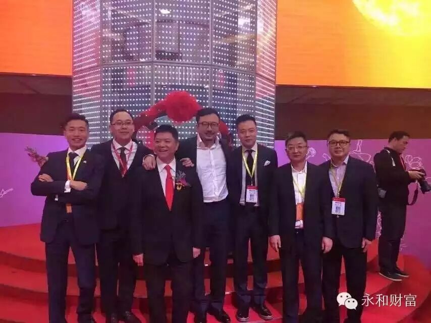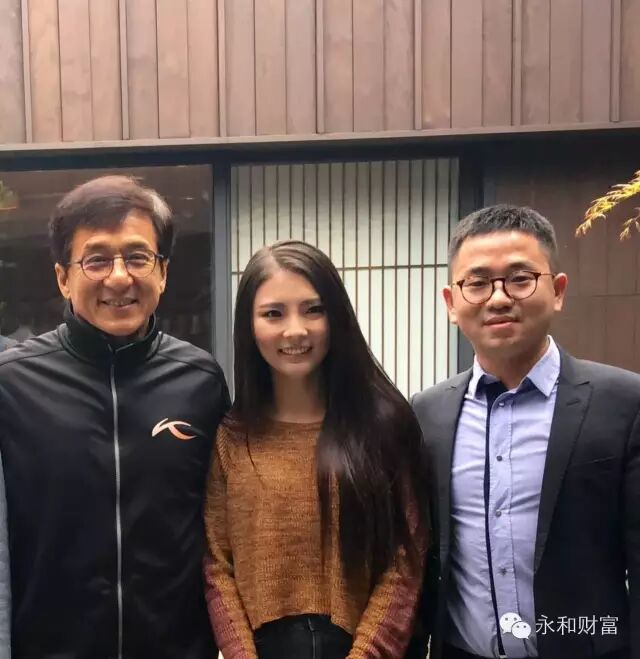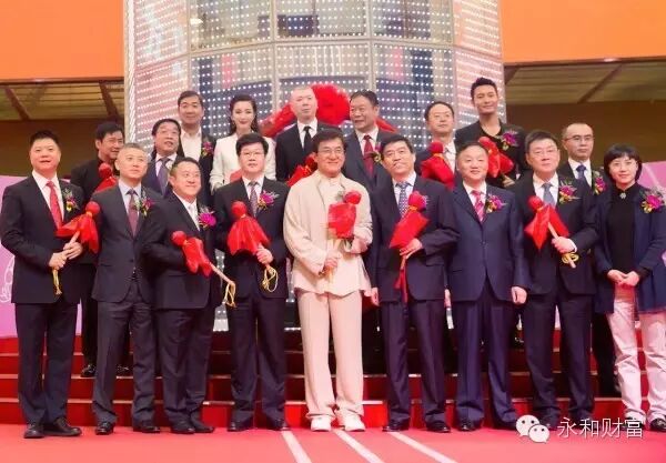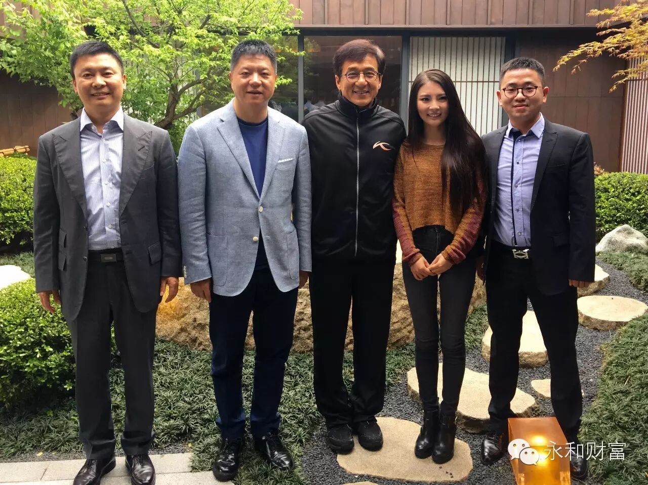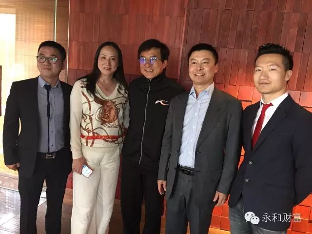 图为:永和财富创始人/总裁罗汉林与成龙等人合影