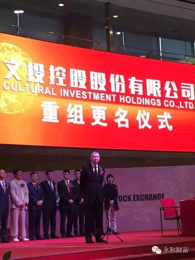 4月7日,“文投控股股份有限公司”重组更名仪式在上海证券交易所举行,成龙、冯小刚、张国立,黄晓明、李冰冰、曾志伟、唐季礼7位明星携手亮相,全国政协委员、中国电影基金会理事长张丕民、永和财富创始人/总裁罗汉林也应邀出席本次庆典,永和财富恭祝“文投控股有限公司”重组更名仪式圆满成功。