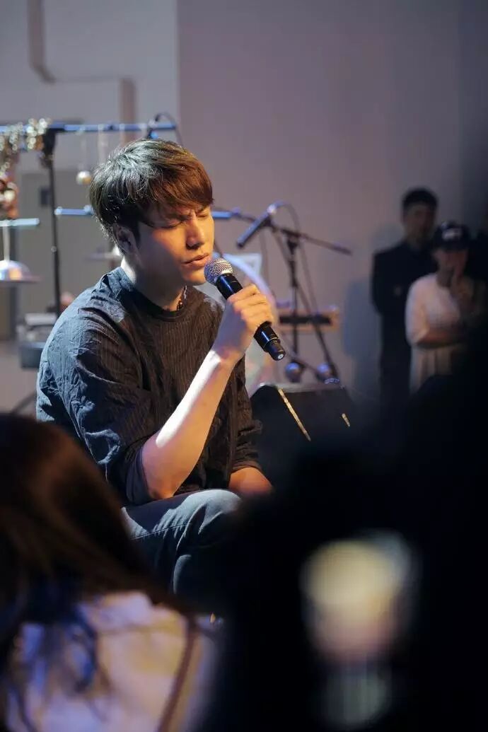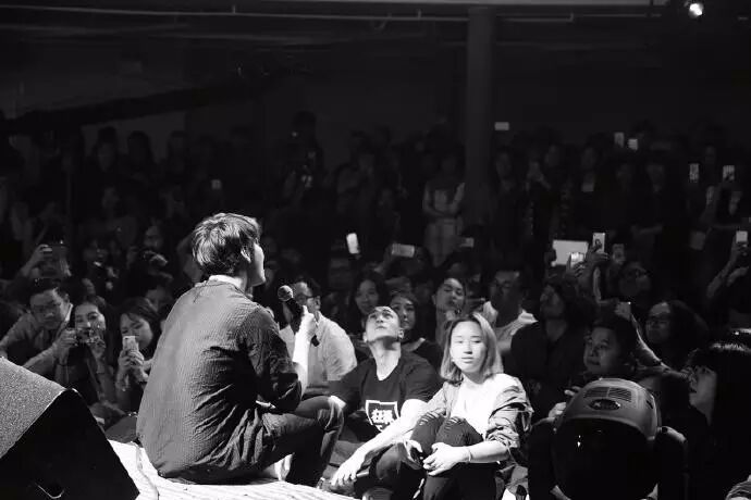 他就这样坐在人群里,没有人知道他什么时候来的,直到歌声响起。大写的有颜任性,是不是。