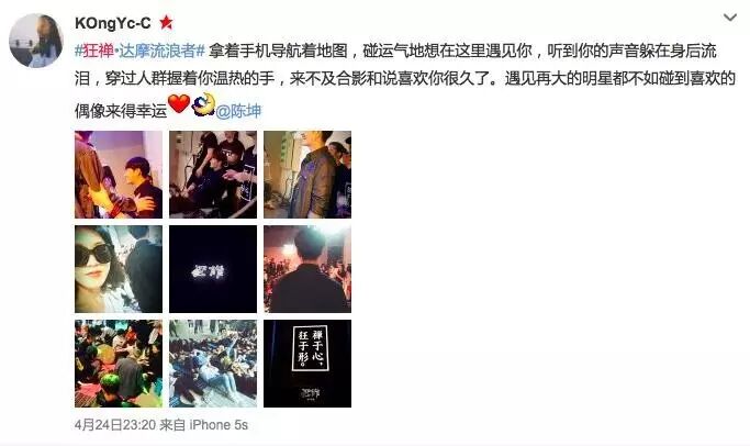 据说,这是两天之内,坤哥在三里屯的第二次快闪。第一次是在23日当晚,狂禅第二季音乐Live现场。演出还没开始呢,坤哥就悄悄溜进人群里坐下。引起现场一片骚动,不知道坐在陈坤旁边的小伙伴们如此近距离的接触偶像什么感受,来分享一只人群中认真听歌的Boy。