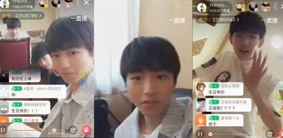 在直播平台里,你可以看到吃火锅的王源、跑步的蒋劲夫、画画的刘亦菲、大谈穿衣经的刘涛、边泡脚边聊家常的贾乃亮、B-box的易烊千玺和办生日会的吴亦凡。