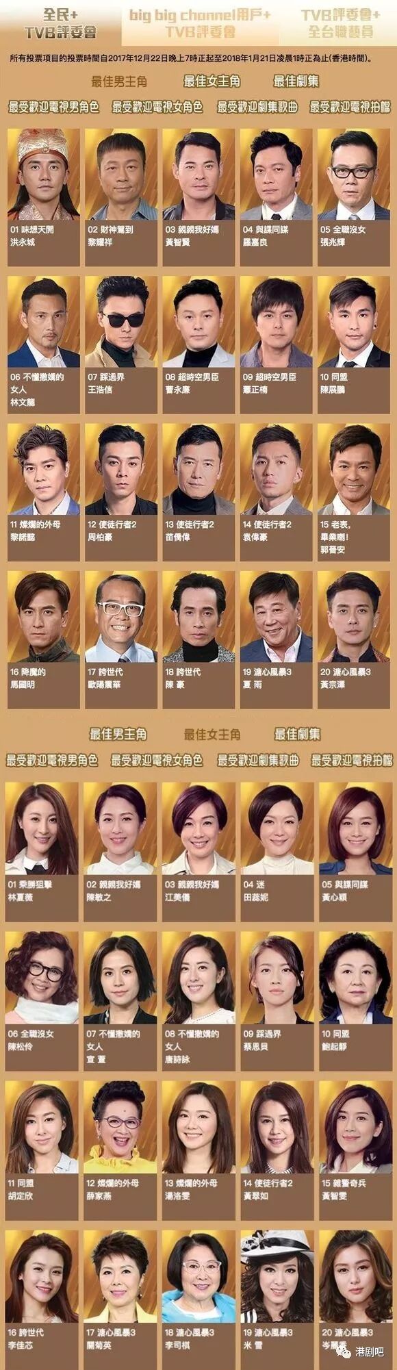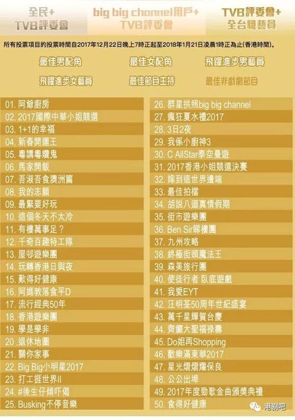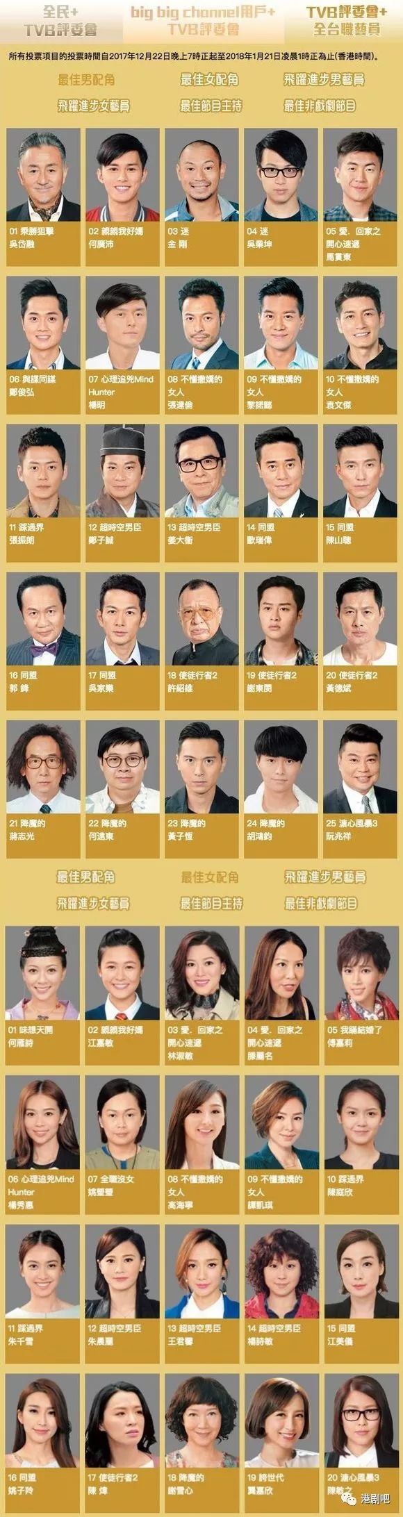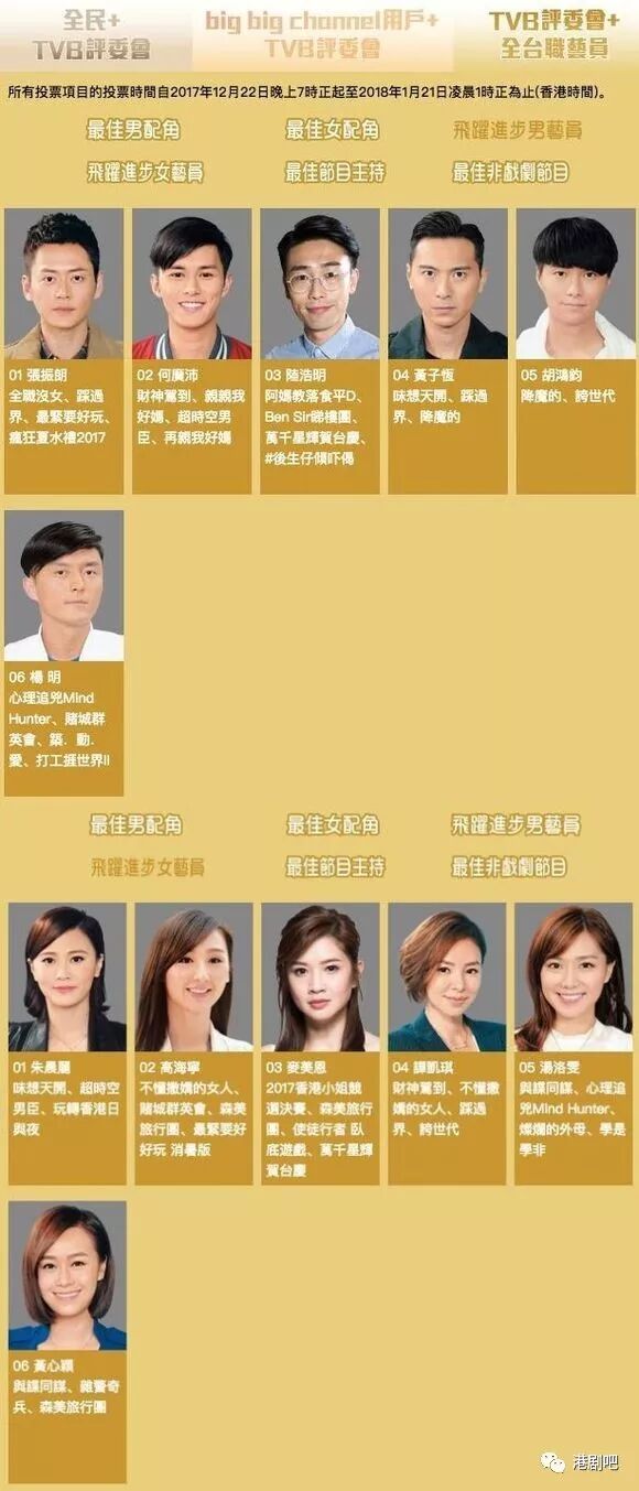《万千星辉颁奖典礼2017》部分提名名单