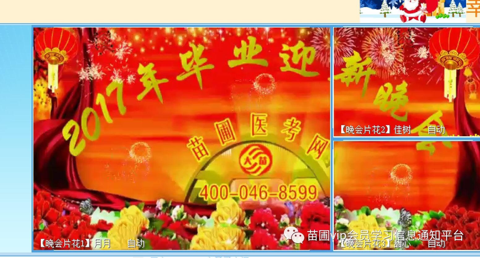 2017年即将过去,我们祝福2017级圆满毕业的同学,苗圃医考网全体师生在这欢乐的时刻,心手相牵。苗圃医考网是和谐的家园,梦想张开了翅膀,大苗老师团队带我们走向了美好明天。通过这台感恩会,让2017级再次回味苗圃即我家的感觉,这台晚会也是2018级同学征战的壮行大会!以下为本次晚会实况录像:请点击在线播放