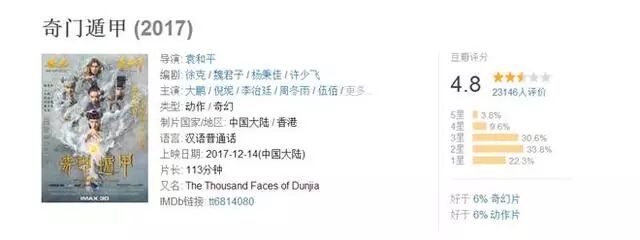 而在贺岁档有那么多影片上映,大导演徐克今年却失算了,徐克监制的《奇门遁甲》虽然有周冬雨,倪妮,范冰冰旗下的李治廷强势参演,影片是帅哥美女一起降妖除魔的题材也是徐克的强项,但是仍然没有改变票房惨淡的事实,跟徐克年初上映的《西游伏妖篇》差了近十来倍。