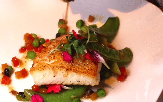 来自法国的银鳕鱼肉,配上青嫩豌豆和国产豆豉一起,浇淋上爽口的酸醋汁,每一口鱼肉都酸爽酣畅。个人觉得这是一款和中餐最像的一道西菜了~