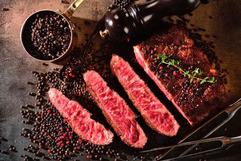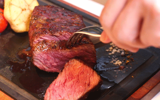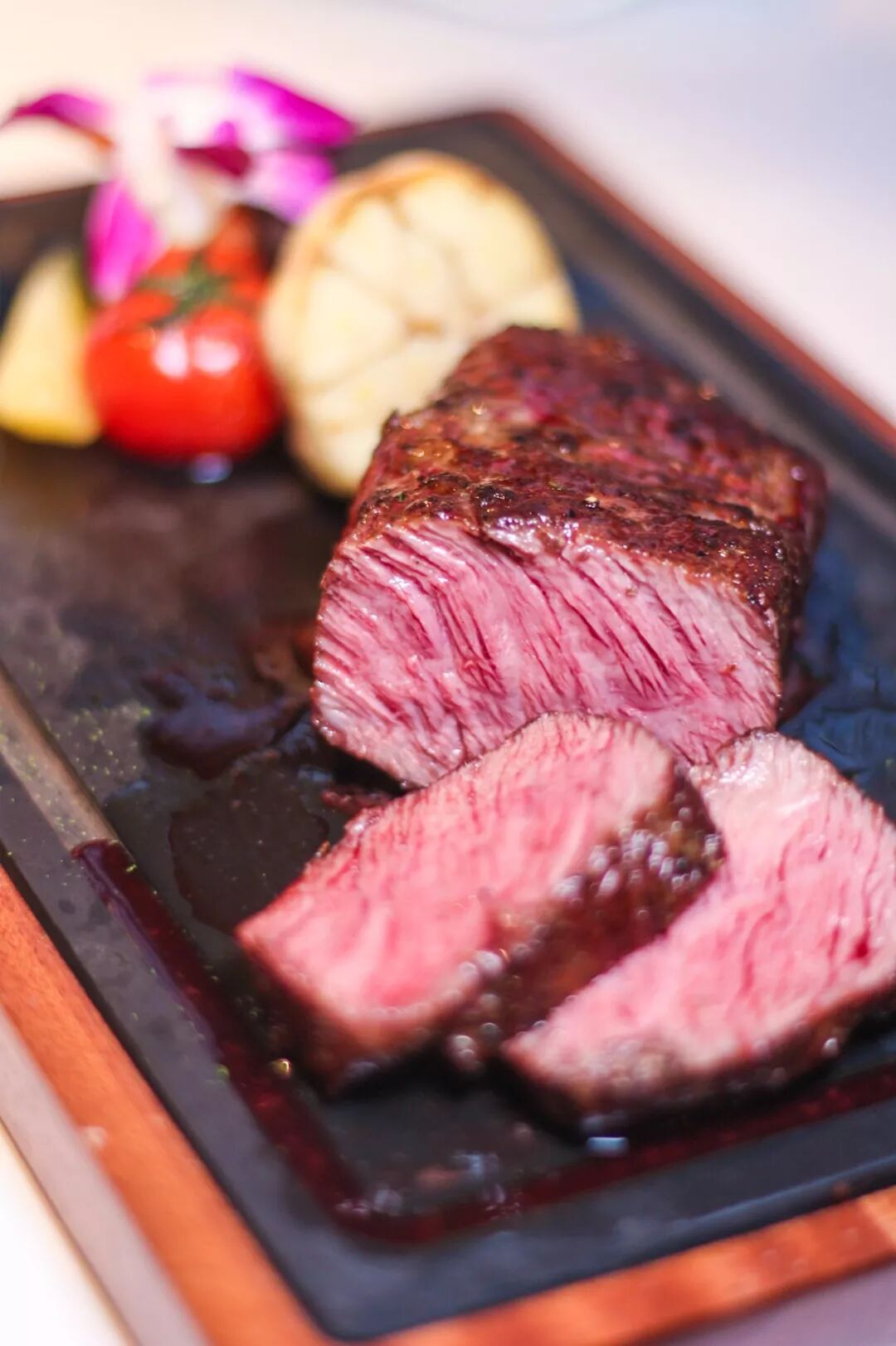 配一点海盐,闭眼细嚼,无穷的肉香回荡,裹带着肉汁的牛排,成股迸射在口腔里。
