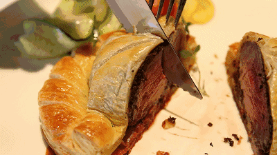 但真正让它一战成名的,还是这个西洋大菜——“惠灵顿牛排”。这道菜虽难倒了众多国际名厨,可它却在这个餐厅被烹饪得炉火纯青。
