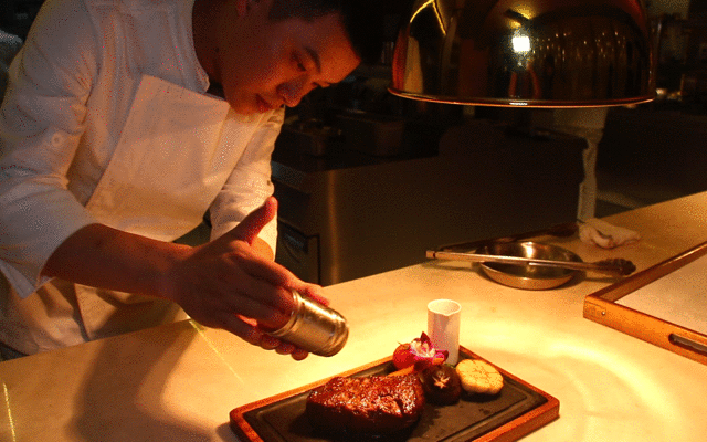 我来到全透明的开放式厨房前,听着“滋啦滋啦”的烤肉声才发现:原来看着帅气的鲜肉厨师单手边烤边煎牛排,也是这么一件养眼的事情。