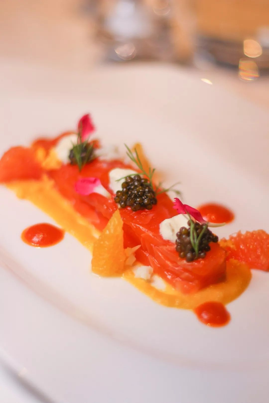 新鲜的现切北欧海域三文鱼,在香草的腌制下释放原始美味。配以墨鱼籽入口,清爽嫩滑,瞬间胃口大开。
