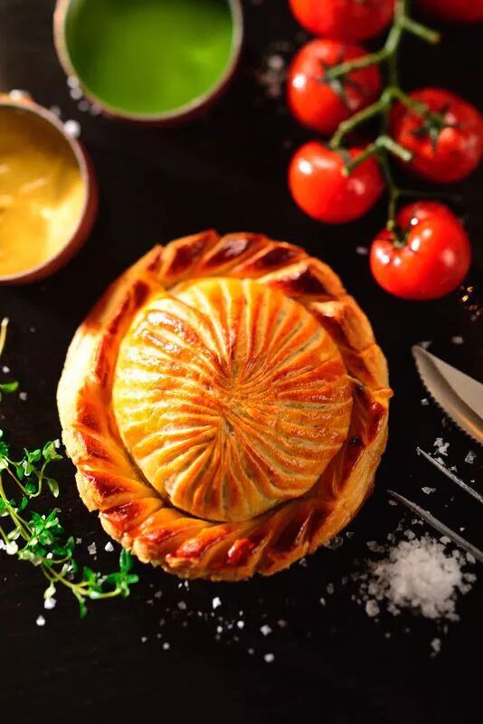 经典的酥皮包裹着菲力牛排,做成了立体花瓣的造型。酥皮油亮,一刀切下去肉汁鲜红,牛排厚度超过5个iphone7!