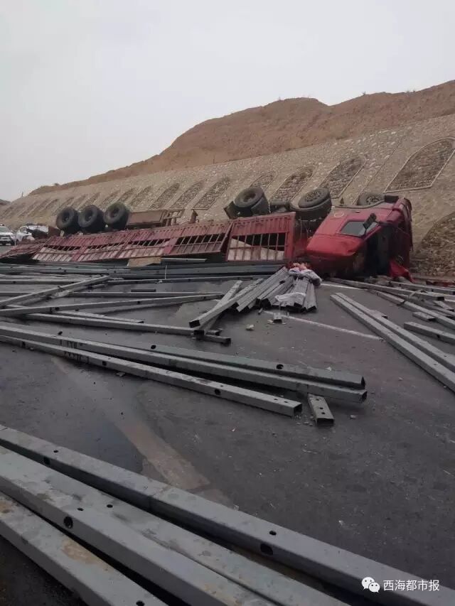3)12月24日22时20分左右,贵德县交警大队接到过路司机报警称,一辆满载钢材的半挂车发生交通事故,有人员伤亡,接到报警后,贵德县交警大队出警民警迅速赶往现场。事发现场,悬挂着冀TN6XX挂牌照的河北籍半挂车,行驶至61公里处时发生侧翻事故。事发时,车辆由西宁方向驶向贵德。事发后,半挂车上的货物全部散落在路面上,车辆受损严重,事发路段交通中断,事故致车内一人遇难,一人重伤。据了解,初步调查可能是司机对路况不熟悉,加之长下坡导致刹车失灵引发的交通事故,具体事故原因,交警部门正在进一步调查之中。
