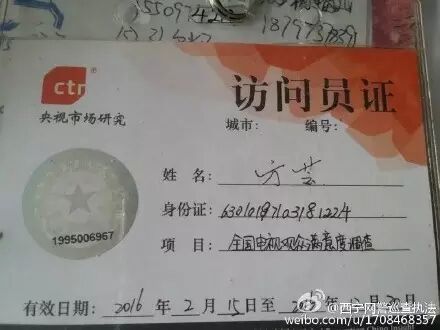 4)近日有群众举报我市有两人自称是央视调查员,手拿调查问卷,收集群众的姓名、电话、身份证号以及家庭住址。西宁网警提示大家:切勿随意泄露个人身份信息,尤其实在不确定对方身份的情况下!如有见到此二人请立即报警!