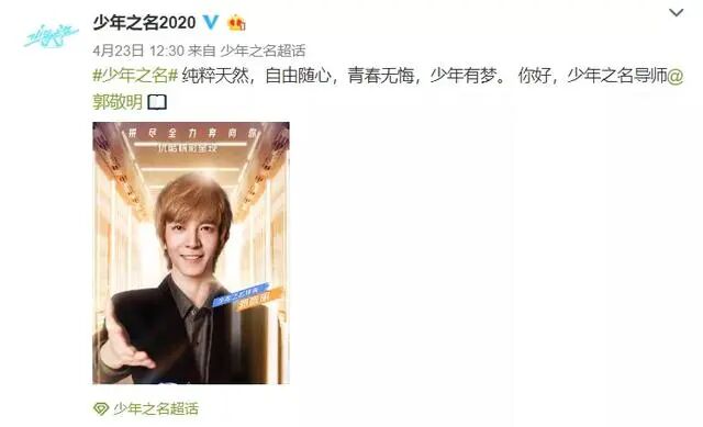 在此前一天,《少年之名》节目组才刚刚把所有导师聚拢官宣,导演和作家身份的郭敬明被排到了第一位。