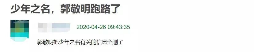 4月26日,有网友惊奇的发现郭敬明把社交平台上所有关于《少年之名》的信息全部删除了,被猜想疑似跟节目组闹掰。