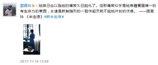 刘嘉玲近来投入新版《半生缘》的拍摄,日前她在微博PO出剧照,并引用张爱玲原着的一段话,其中一句:“但那痛苦似乎是她身体里面唯一的有生命力的东西……”,就像在回应怀孕传闻,暗示自己根本没怀孕。