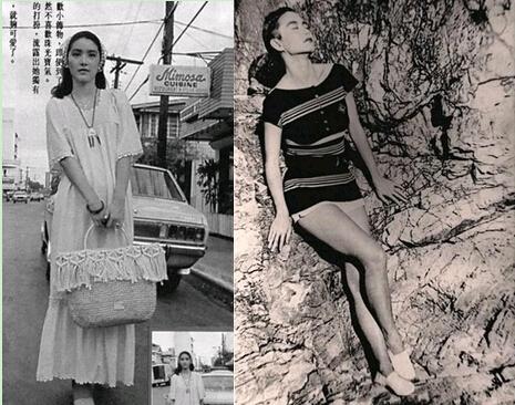 看看这张,街头的波西米亚白色长裙配编织包和民族风发带,少女感呼之欲出,想想如今的森女风,走的还不是一样的套路,几十年前林女神简直随随便便就美的甩她们一条街。还有海边度假条纹连身短裙,女神梳个大背头随意的往石头边一靠,这不就是姑娘们如今追求的复古泳衣范儿嘛?