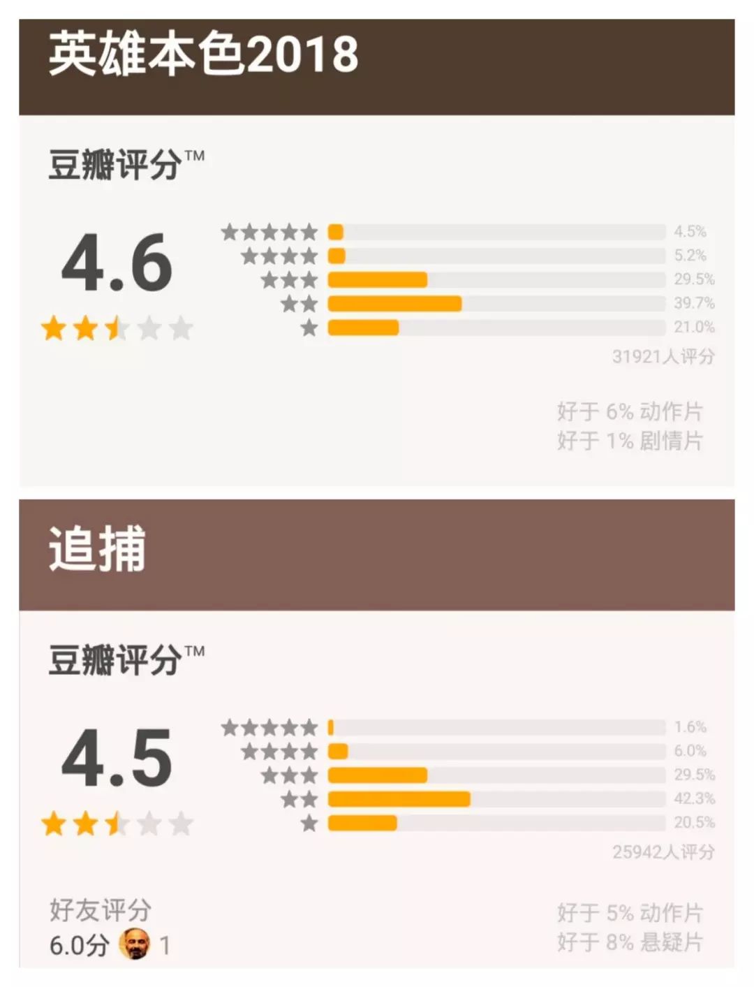 与上文所提的几部影片不同的是,市场上另一类风行的翻拍片主打的则是情怀牌,像由吴宇森执导、张涵予、福山雅治参演的《追捕》是致敬佐藤纯弥执导、高仓健、原田芳雄主演的同名影片,而丁晟 导演的《英雄本色2018》则是致敬吴宇森的经典之作《英雄本色》。奈何这几部主打情怀牌的翻拍片无论是票房还是口碑都不尽人意。