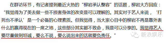 呃...这些明星都能很大方的承认自己“微调”过,那为什么还有艺人不承认呢?柳岩说这是必备的心理素质。