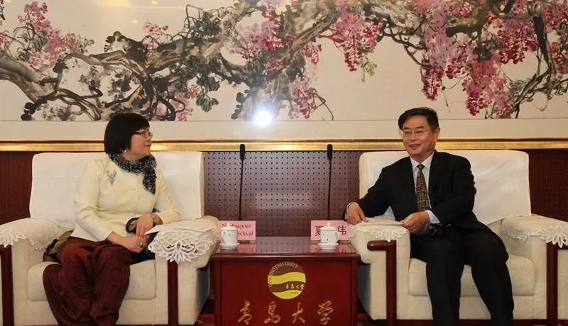 3月22日上午,泰王国驻青岛总领事馆总领事王玉君一行四人到访我校。校长夏东伟会见了总领事一行。