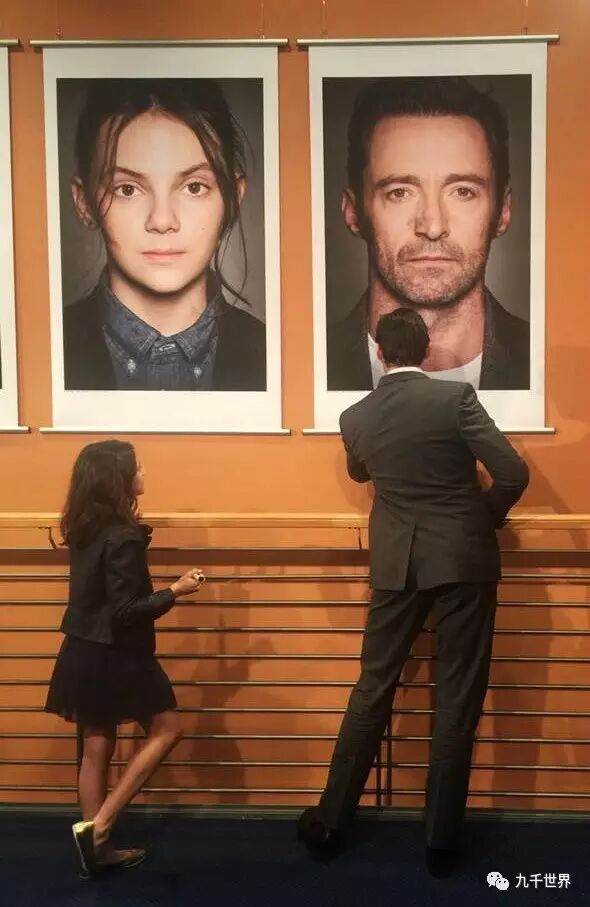 金刚狼”休·杰克曼和“小狼女”达芙妮·基恩在柏林电影节给自己的海报签名,背影是告别,或许也是前路的开始