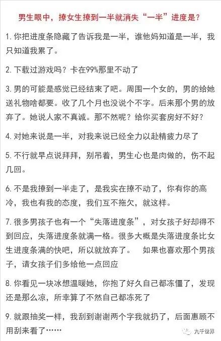 男生眼中,撩女生到一半就消失这句话中“一半”的进度是多少?
