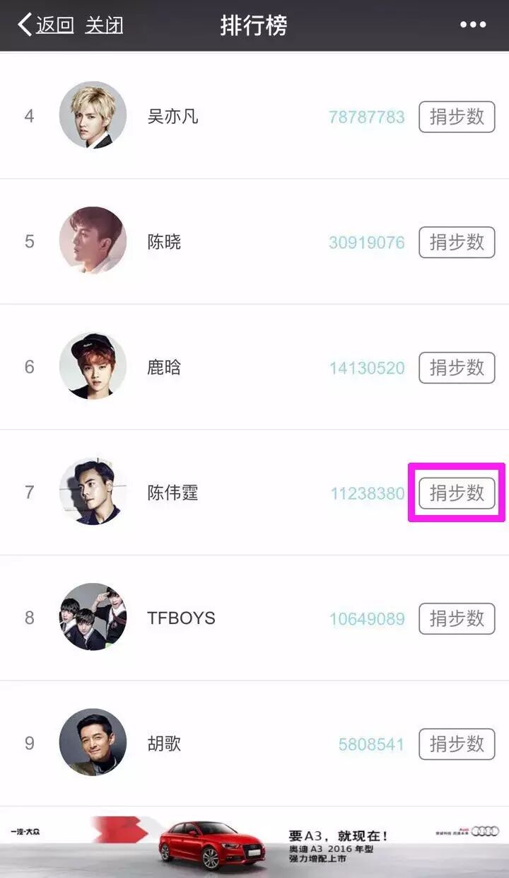 1.根据你的微信运动数据,为明星贡献你的运动步数。