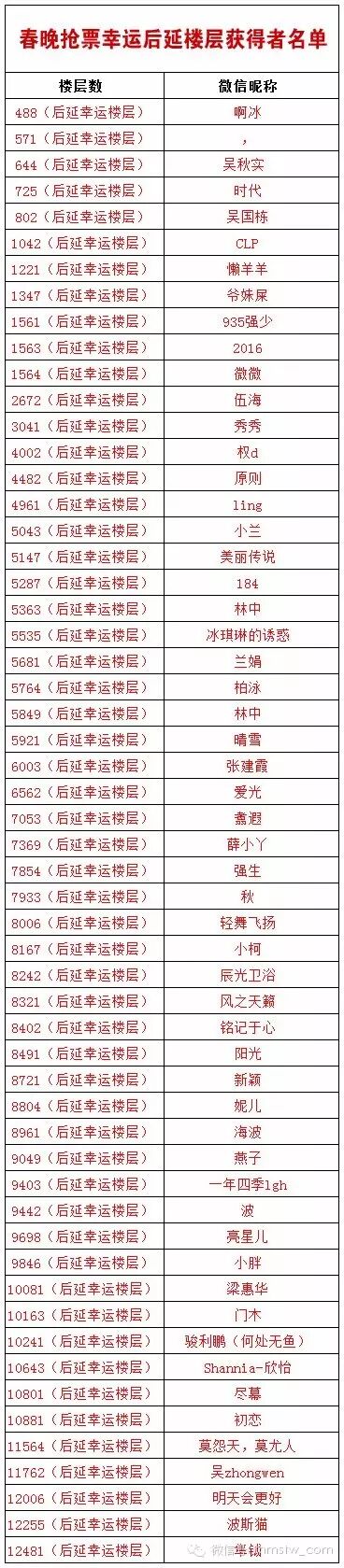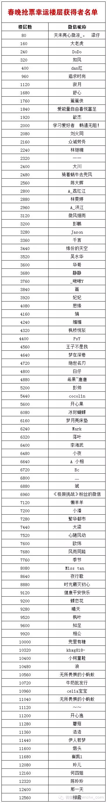 【注】以上用户均为获奖者。后延幸运楼层的产生:幸运楼层由于连续盖楼超过5楼,则取消该幸运楼层,后延到最接近幸运楼层的有效参与用户。