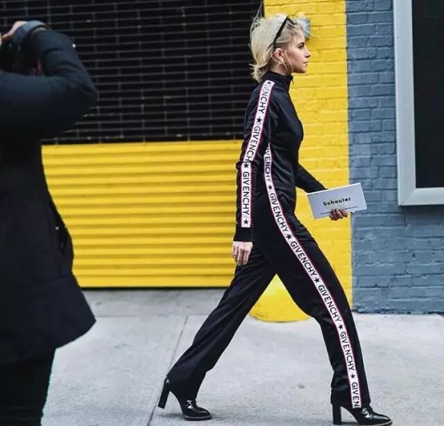 比如今年就很流行上下顺色的套装式打扮,简单又出彩。