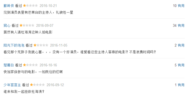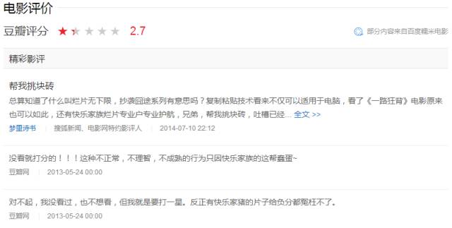 13年,何炅谢娜海涛只是客串了电影《一路狂奔》,结果影评纷纷表示有快乐家族的片子不用看就给负分。