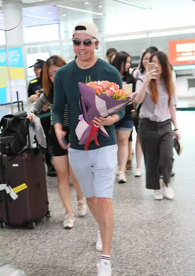 俞灏明现身广州白云机场,一身休闲装扮的他获数十位粉丝接机,接过粉丝送的花后,他开心地露出了笑脸!