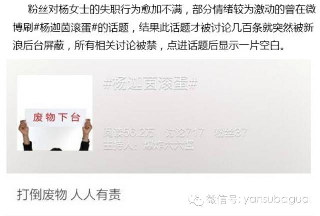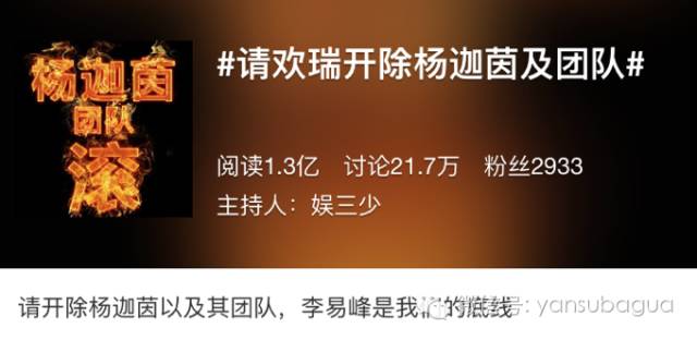 最后粉丝呼吁欢瑞开除杨迦茵极其团队,并带了微博话题,现在阅读和讨论也都不低