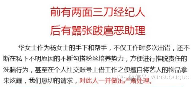 除了杨迦茵,粉丝还撕了经纪团队里的华姓助理,指责她利用李易峰助理的职位满足个人的曝光需求