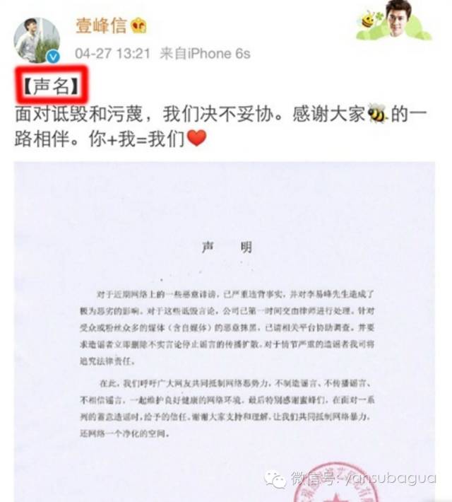 最后还指责李易峰的官方宣传账号总是犯低级错误……写错“声明”