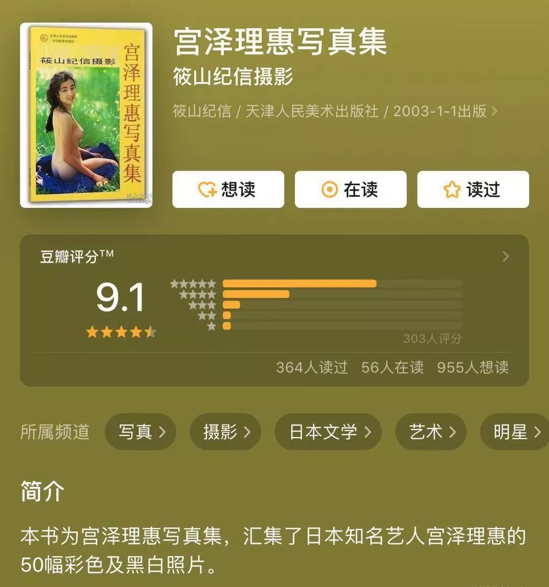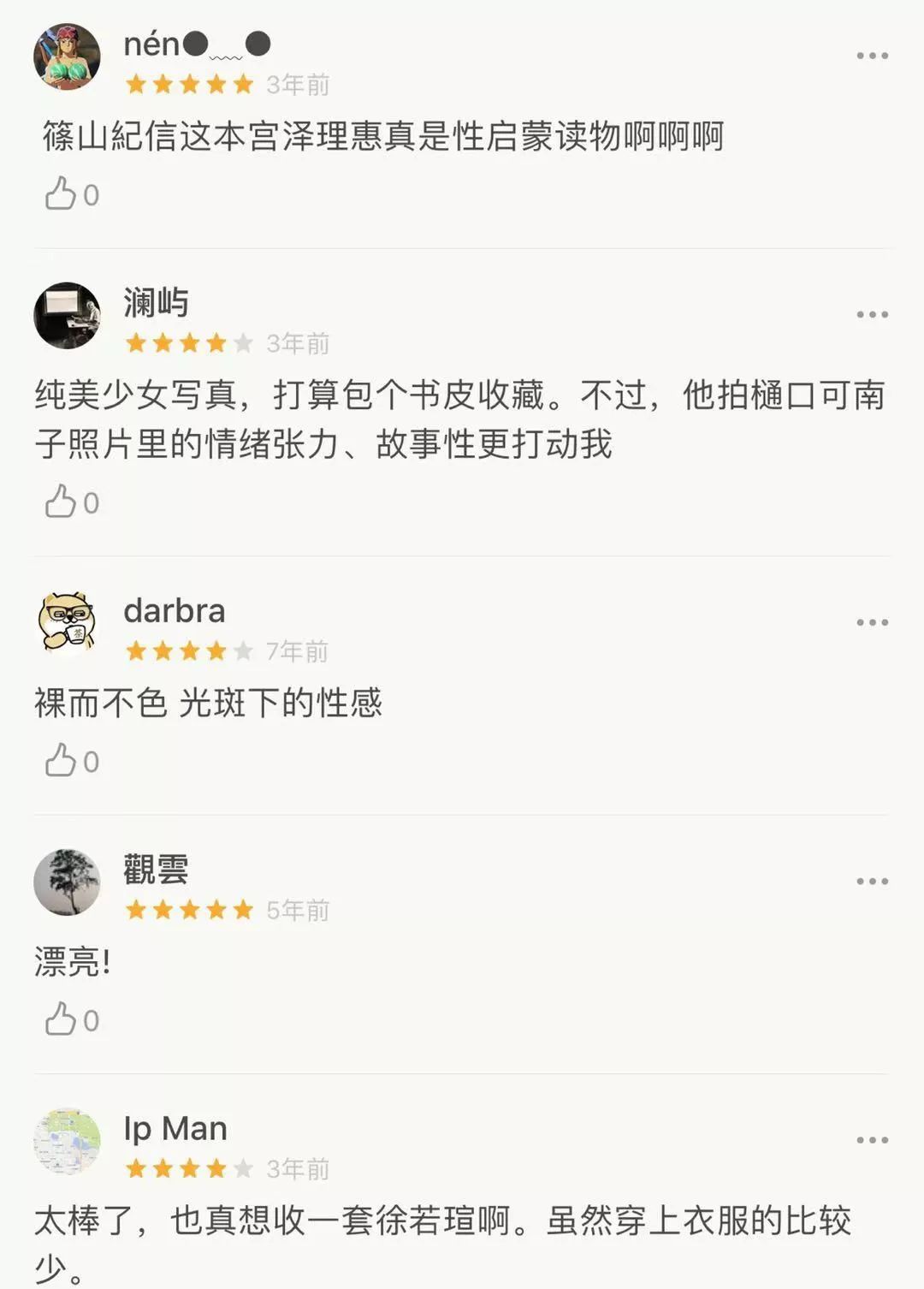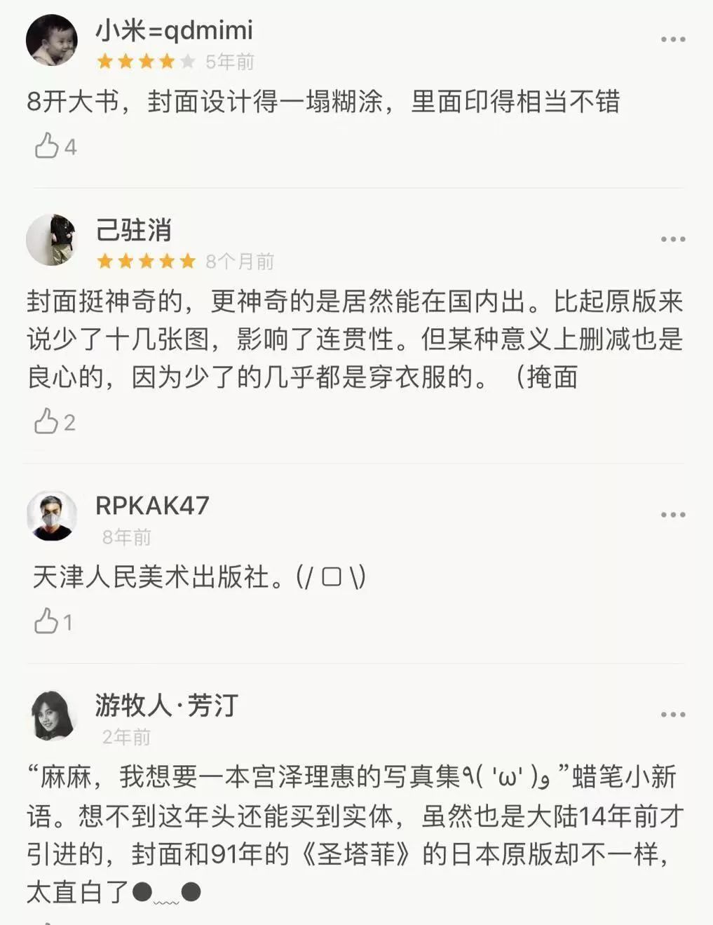如图中网友所说,这本宫泽理惠写真集,让我想到了徐若瑄的写真。我大哥翻阅时,还说更喜欢徐若瑄的,准备翻墙去找找徐若瑄的写真来重温。在我,更多的是拿它和樋口可南子的写真集来作对比,偏爱后者,或者说,樋口可南子是我至今的最爱。当然,《宫泽理惠写真集》还是非常难得。我也曾注意到有图书网站十来元一本就处理了这本书,遗憾当时未多买几本—送送朋友书友都是不错的礼物。