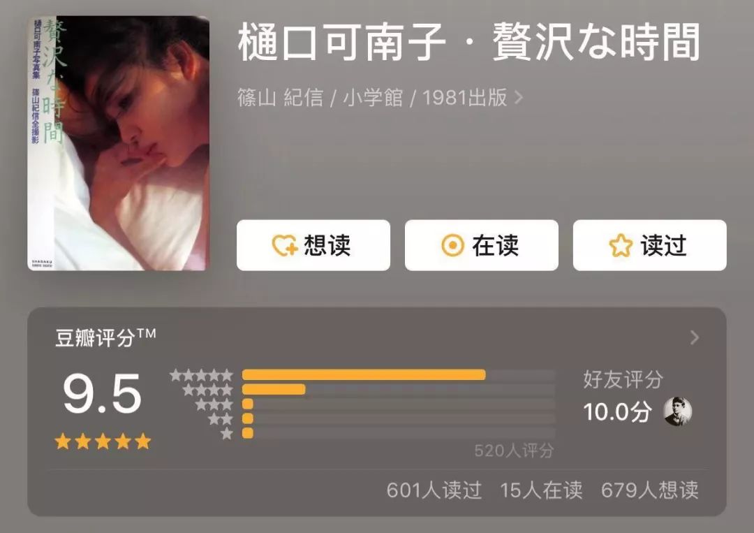 从豆瓣的评价来看,有不少同道中人喜欢筱山纪信的作品,几本作品的高分评价,是神级行列了。樋口可南子前后有两本,虽然第一本评价要高点,我偏爱的是第二本,这跟个人喜欢黑白有关,第二本的黑白摄影,更干净、纯粹。