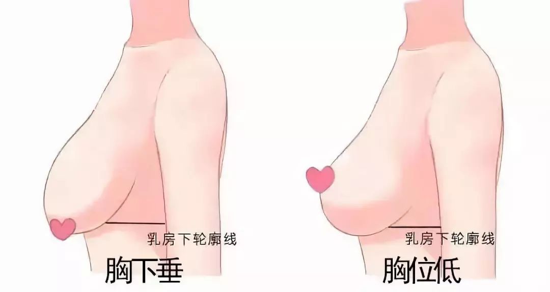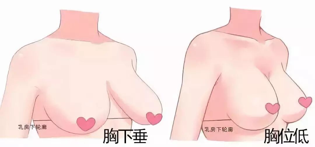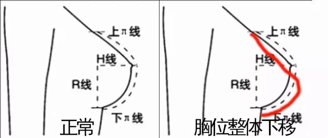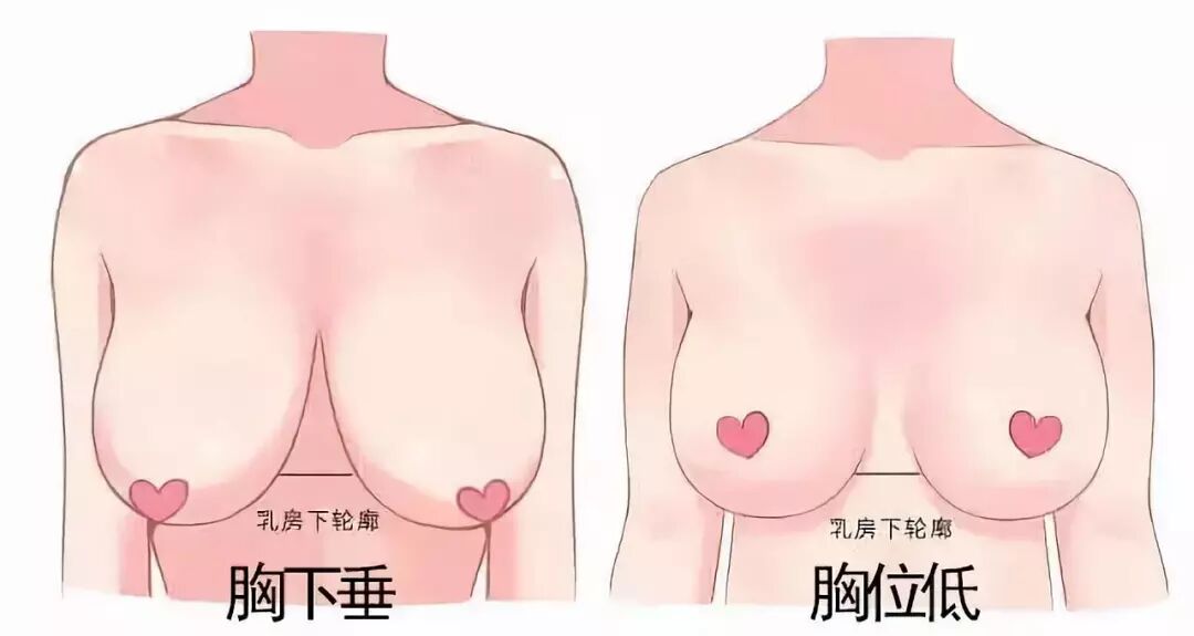 乳头和胸下缘线都变低了。