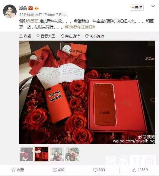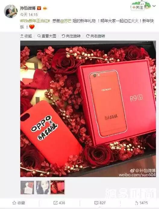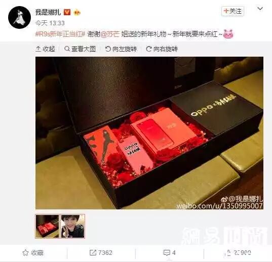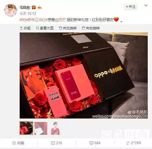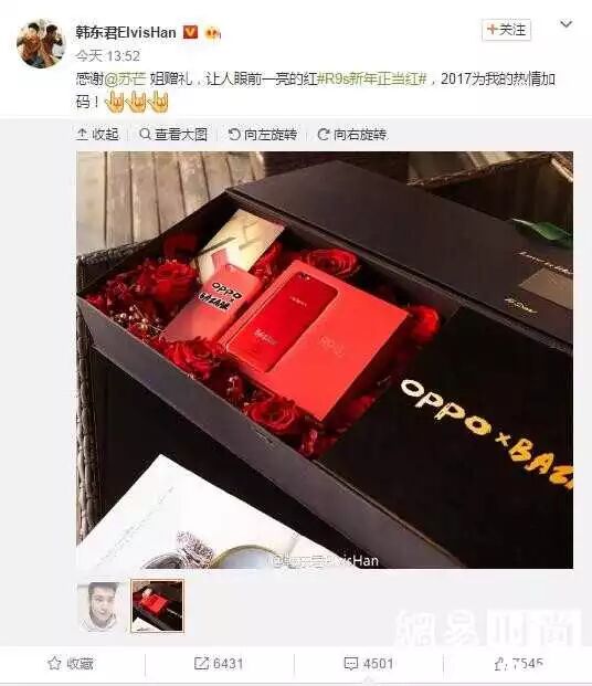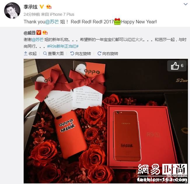 苏芒把红色OPPO R9s作为17年新年礼直接送给各大明星,还亲自深度定制了礼盒版的,简直不要太炫了!满满的精致奢侈风太让人欲罢不能了。
