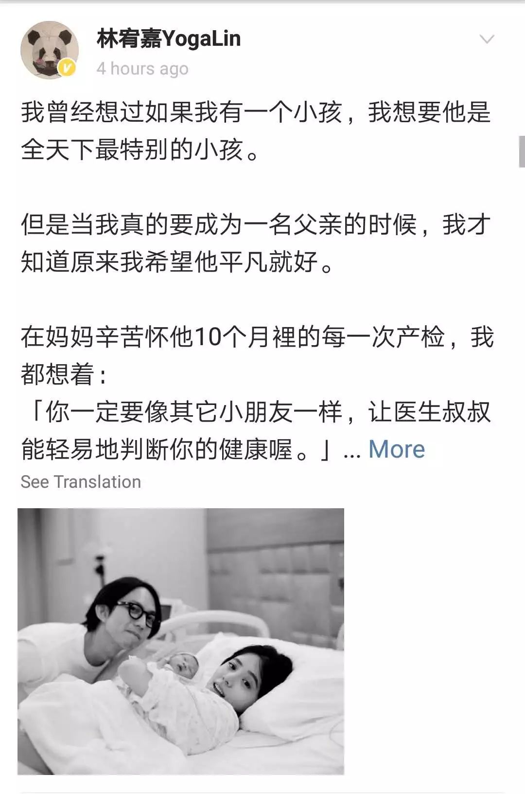 昨天19:10,他发了一条微博,宣布老婆丁文琪平安产子。