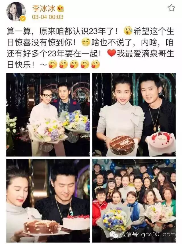 哇,原来是发糖,不过选在半夜真的好吗,还用了诸如23年,好多个23年,在一起,最爱滴,五个爱你的表情等关键词,过个生日也忒甜腻了。