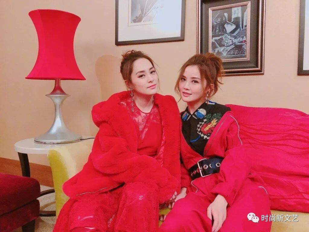 阿娇身着一袭红色蕾丝连衣裙,外搭红色丝绒大衣,一身红色衬托的她的气色非常好。阿Sa一改往日甜美风,穿上黑色刺绣衬衫,外搭一套大红色连体工装,腰间系着黑色腰带,非常帅气。